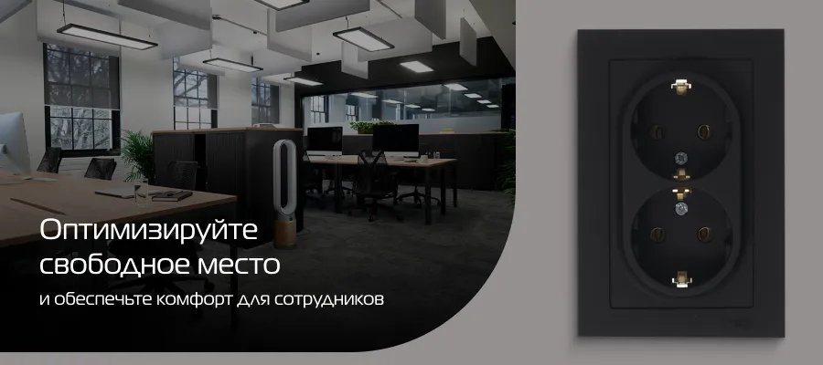 Практичным выбором для офиса станут двойные розетки – электроустановочные изделия, которые позволяют подключать два устройства к одной точке электроснабжения. Они могут быть представлены в различных вариантах: настенные, встроенные в столы или в офисные перегородки. Двойные розетки используются везде, где необходимо обеспечить доступ к электропитанию для большого количества оборудования.