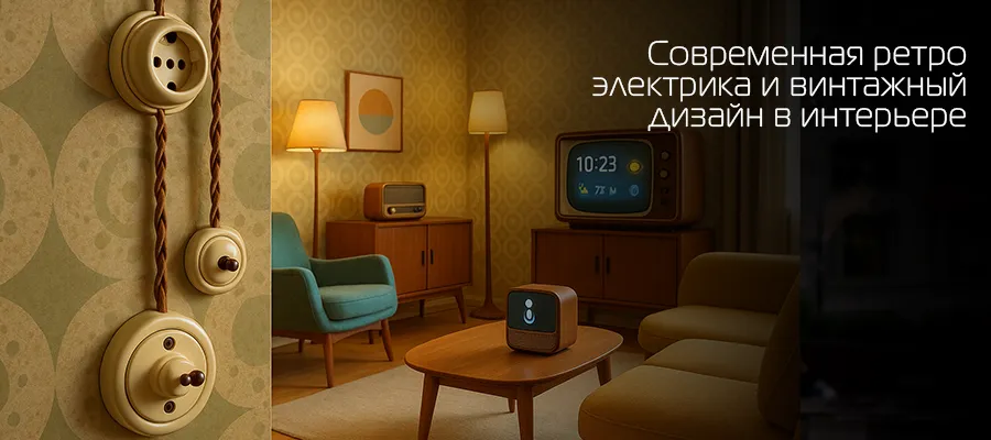 Еще один вариант – типовые розетки и выключатели со Smart-функционалом, замаскированные под винтажные модели с помощью специальных накладок. Это самый простой и экономичный способ добиться желаемого эффекта.