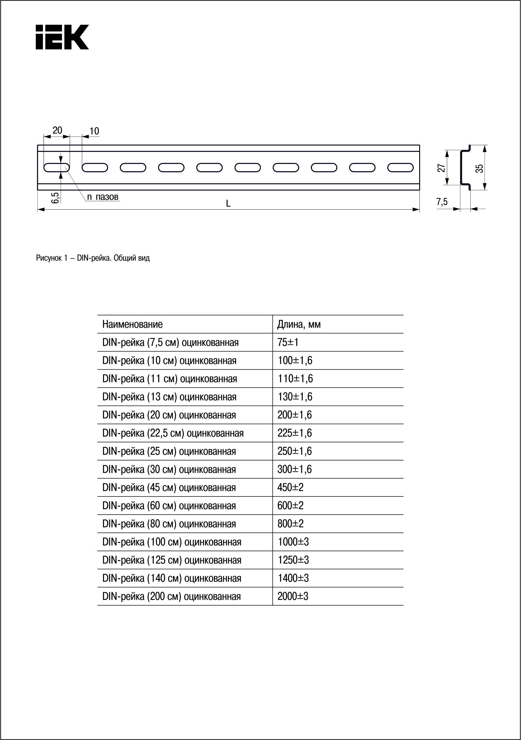 | Тип изделия | DIN-рейка перфорированная |