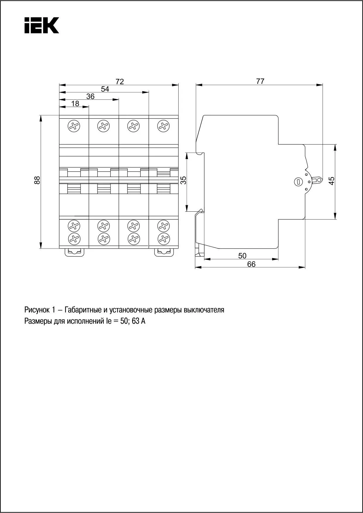 | Номинальный ток, А | 50 |