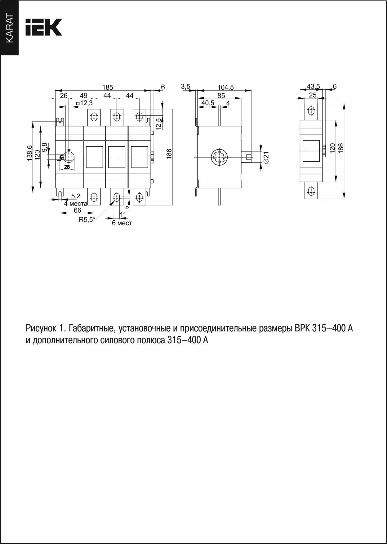 | Номинальный ток, А | 315 |