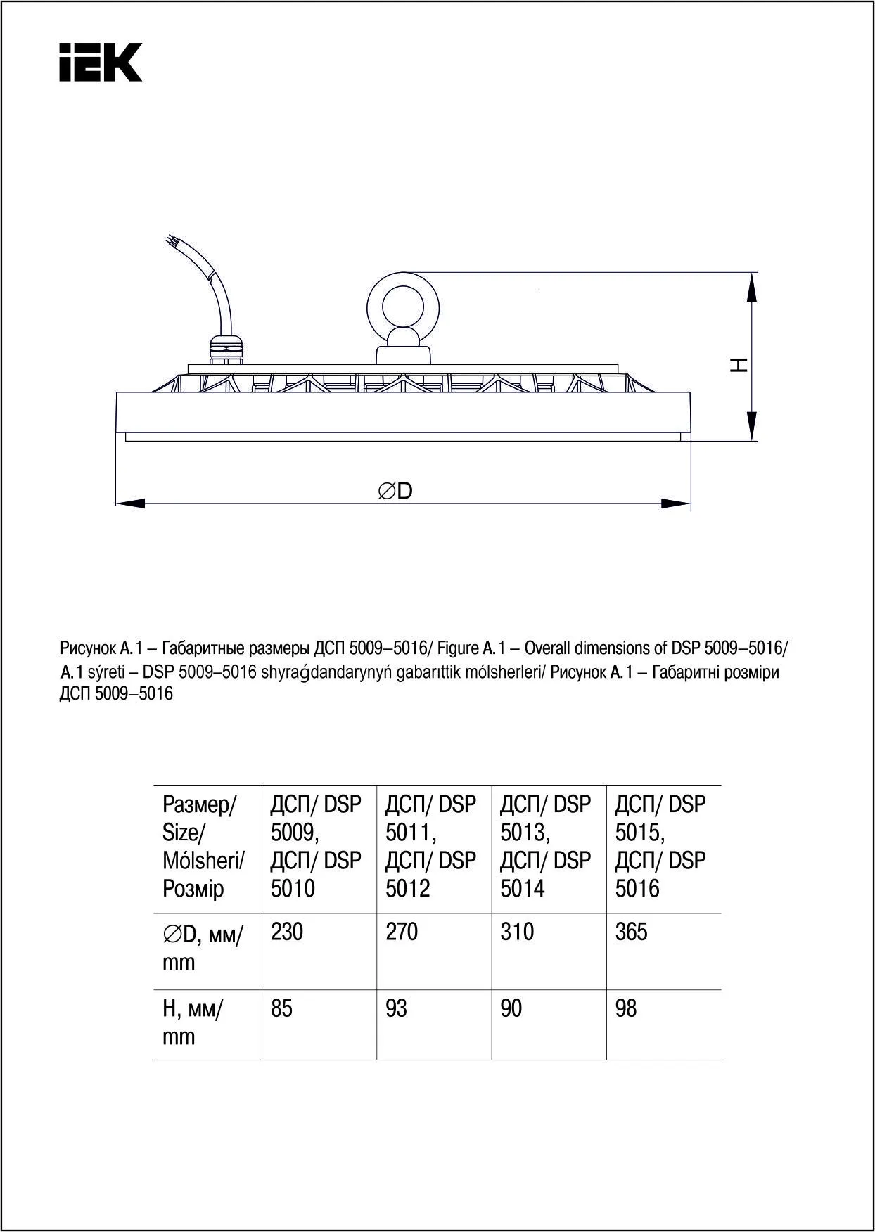 | Тип изделия | Светильники для высоких пролетов |