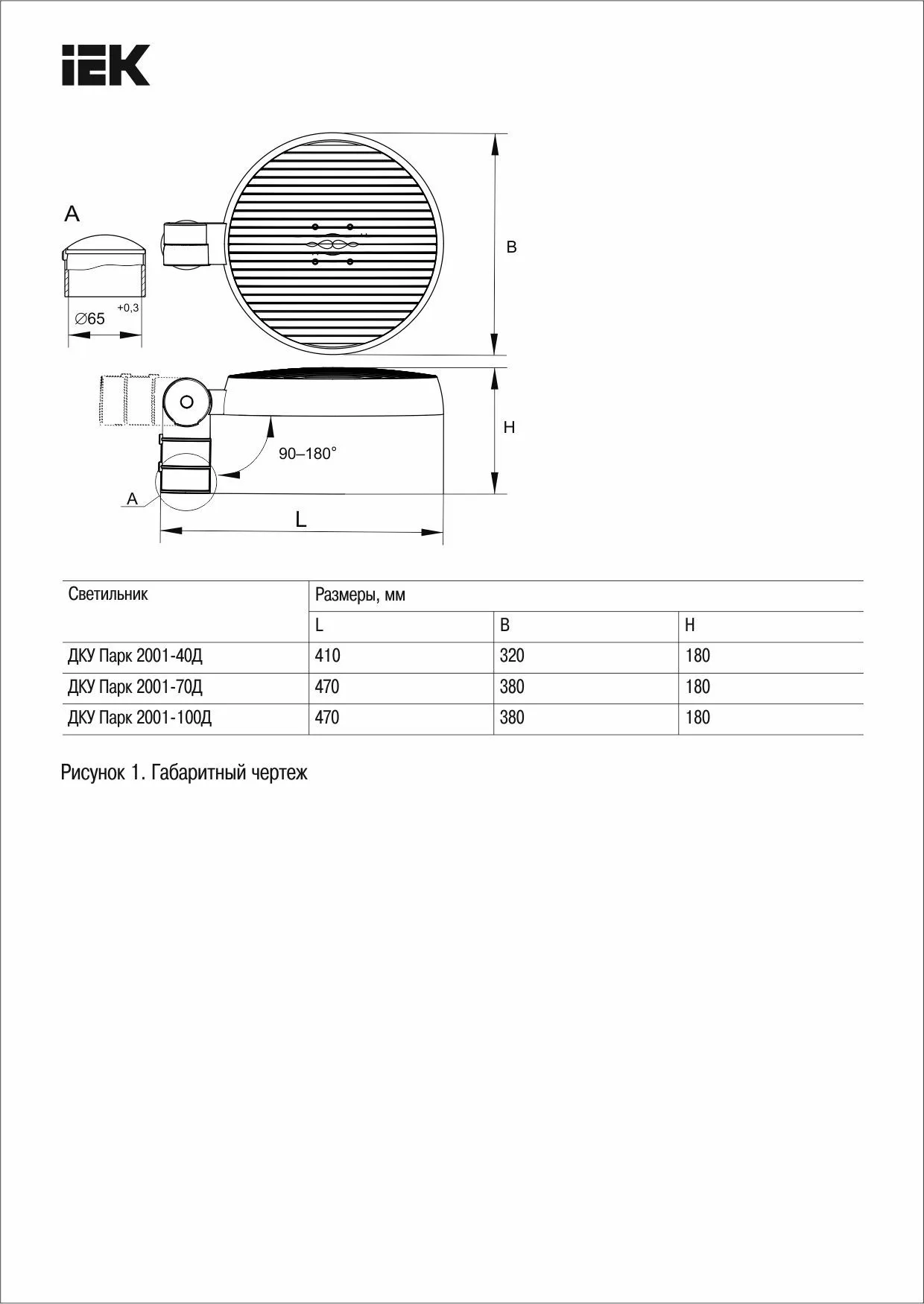 | Степень защиты, IP | 65 |
